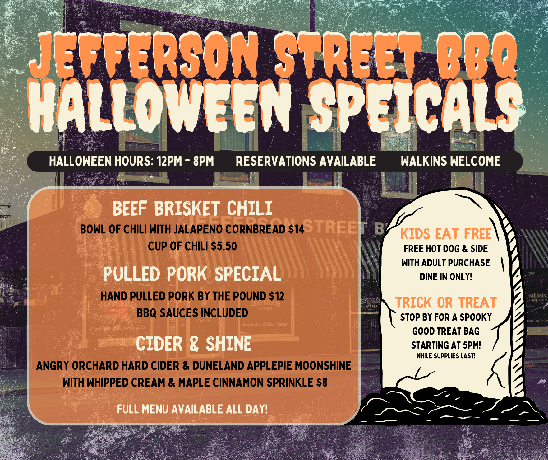 Discover the heart of Indiana BBQ at Jefferson Street BBQ in Converse, IN, where our unique take on barbecue is crafted with care and time honored tradition. All of our meats are smoked in-house over local hickory, including our must-try handmade sausages and hot dogs, made with hand-trimmed beef brisket. Our menu showcases favorites like beef brisket, pulled pork, smoked turkey breast, pork spare ribs, and an array of scratch-made sides like mac & cheese, pork belly baked beans, loaded bacon mash, and super slaw. Savor our combo plates, signature tacos, nachos, and sandwiches, with new BBQ creations or classic favorites on rotation.